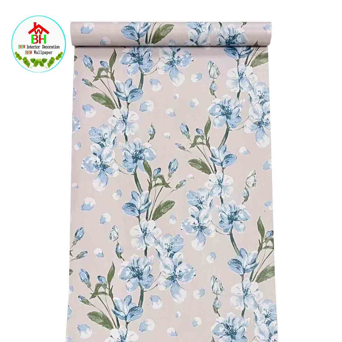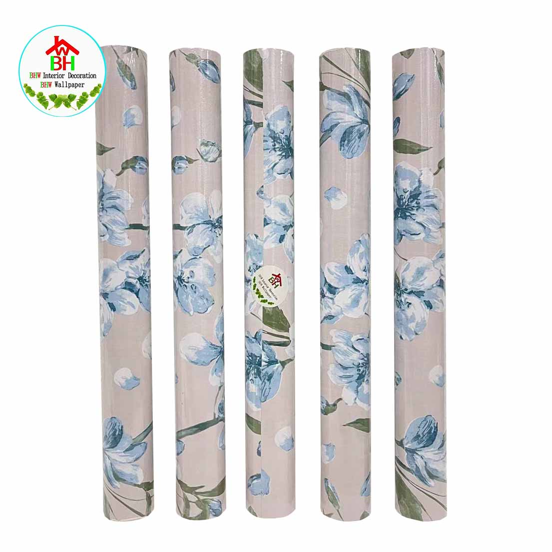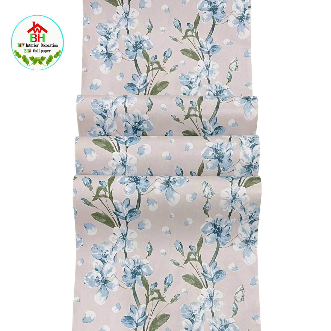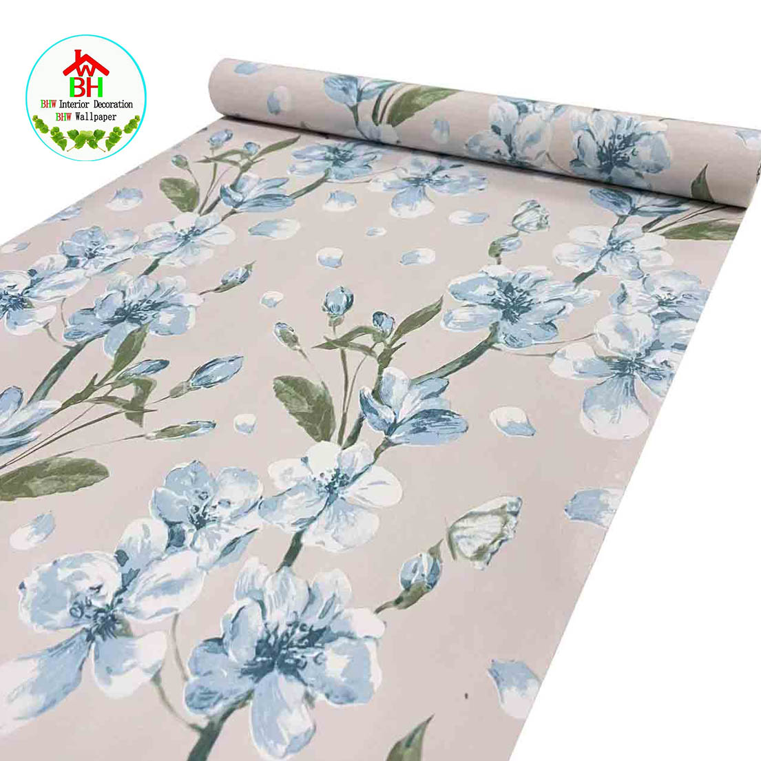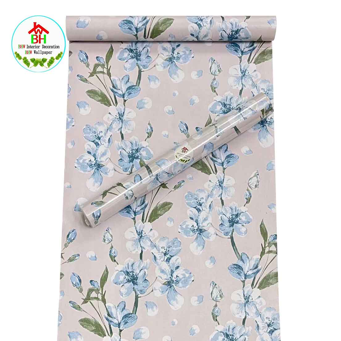 BHW Wallpaper Floral Design Color Blue Self-Adhesive Wallpaper PVC Waterproof G18