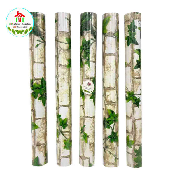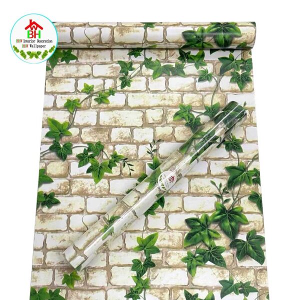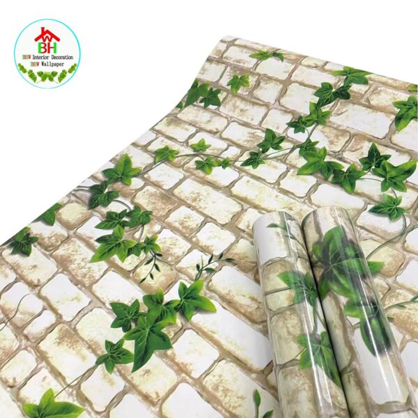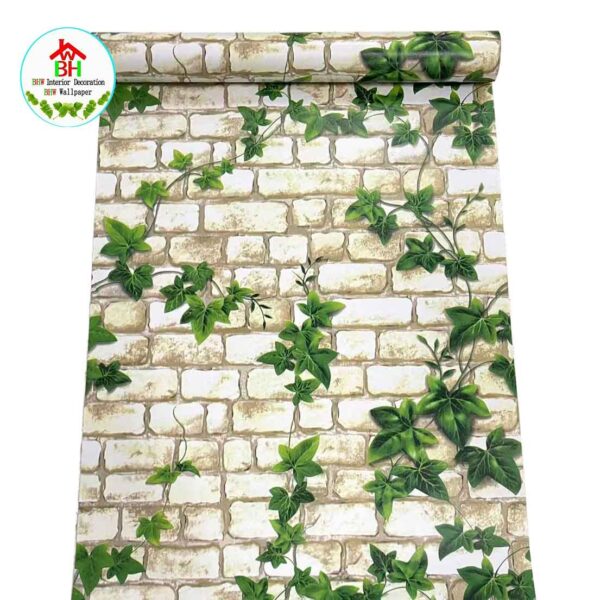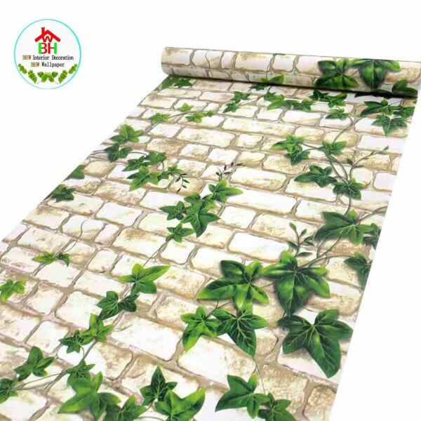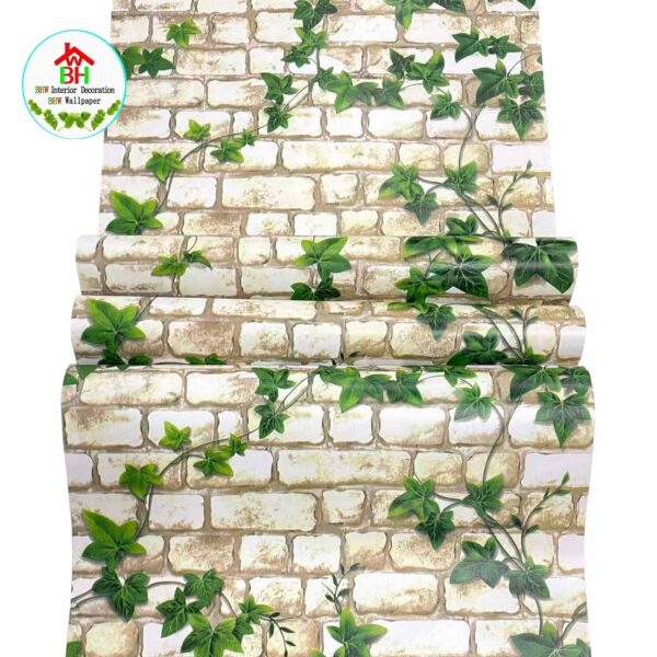 H20 – It is a white and cream color of a wallpaper designed as bricks with green leaves.